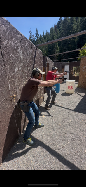 BDU pants or jeans, long sleeve shirt is recommended, tactical boots or hiking boots, eye & ear protection, semi auto pistol & carbine rifle, spare magazines for each, range bag, belt with holster and magazine holder, rifle sling (single or double point), ammo for each firearm (minimum 400 rounds total), water, and snacks.